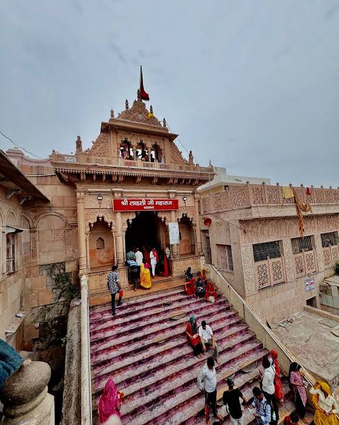 There is also a popular legend associated with the temple. According to it, Krishna's father Nanda and Radha's father Vrishbhanu were close friends. While Nanda was head of Gokula, Vrishbhanu was head of Rawal. However, fed up with the atrocities of Mathura's king Kamsa, both of them with their people shifted to Nandgaon and Barsana. Nanda made Nandishvar hill his home and Vrishbhanu made Bhanugarh hill his permanent abode, which also ultimately became the abode of Radha. Presently, in both the twin towns of Barsana and Nandgaon, there stands the historical temples dedicated to Radha and Krishna on the peak of Nandishvar and Bhanugarh hills respectively. While Nandgaon temple is called the Nand Bhawan, Barsana temple is named after Radha, called Radha Rani temple or Shriji (Shreeji temple).